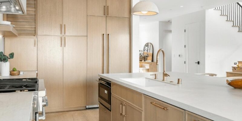 These tones keep the brightness of white but add warmth. They prevent the kitchen from feeling cold while still expanding the visual space.